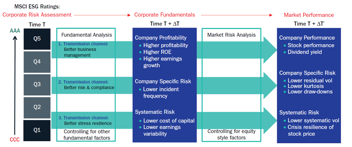 일각에서는 ESG 테마 투자가 ‘군중심리(crowding)’로 인한 주가 왜곡을 불러온다는 지적도 있었지만, MSCI의 분석은 이를 부정했다. ESG 등급이 높은 기업의 주가 상승은 주가수익비율(P/E)의 확장이 아닌, 이익 증가와 배당 확대에 의해 설명된 것으로 나타났다. 즉, ESG 투자 수익은 시장의 유행이 아니라 기업의 실질적인 성과 개선에서 비롯됐다는 것이다.