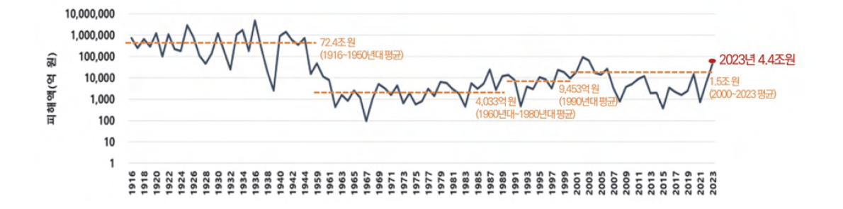 건물·차량·농경지 등의 직접 피해만 반영했을 때도 총 피해액은 최소 46조 원에서 최대 57.8조 원으로 추정된다. 연구진은 “이는 GDP의 2.4%에 해당하는 규모로, 1998년 태풍 ‘루사’ 이후 최대 피해가 예상된다”고 설명했다.