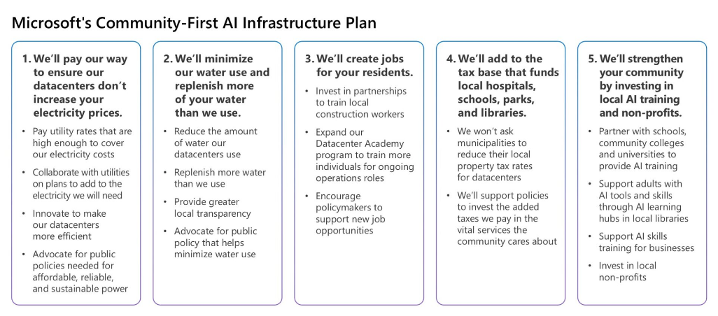 MS는 지역 사회가 데이터센터 확장으로 얻는 혜택이 부담보다 커질 수 있도록 설계된 5대 약속을 제시했다.